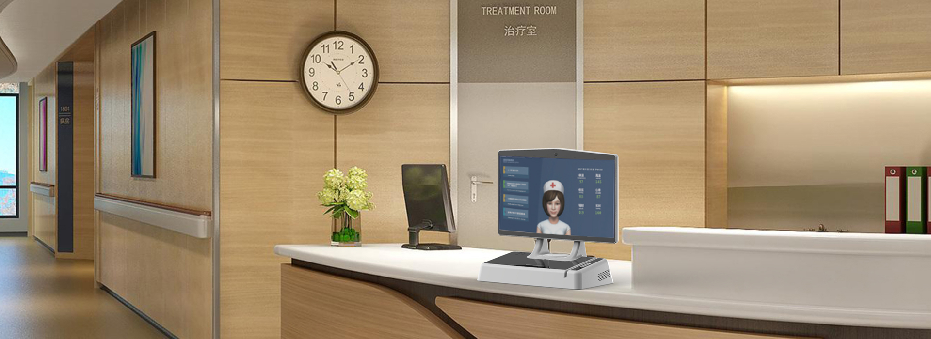 以智能終端為載體,在門診問訊處、各層護士站、門診科室侯診處等地與患者進行語音交互了解患者需求,解答患者疑問。還可通過指紋識別、身份證識別等多種身份驗證手段,確認患者身份信息,幫助護士對患者進行信息錄入、確認。